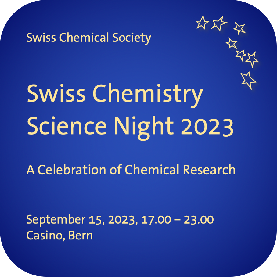 The Swiss Chemistry Science Night is a celebration of discovery and innovation in the chemical sciences. It will take place on September 23, 2023, 5 pm at the Casino Bern. Participation is by invitation only.