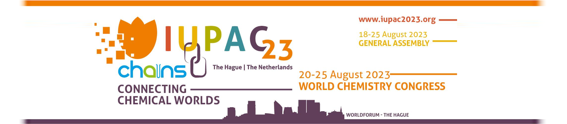 Deadline for submission is Wednesday 15 February 2023. All information regarding submission guidelines and (sub)themes, can be found in this link: www.iupac2023.org/abstracts