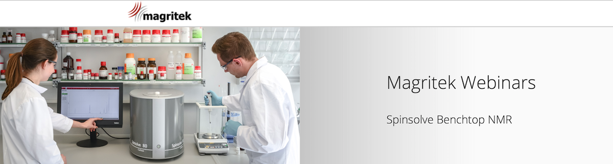 Since many years, Magritek participates in many of the SCS events as exhibitor and presents the Spinsolve Benchtop NMR. As most of the SCS events were shifted to the virtual room, you could not meet the Magritek representatives in person. Therefore we are happy to offer you the possibility to look at the new Magritek NMR in one of the provided webinars.