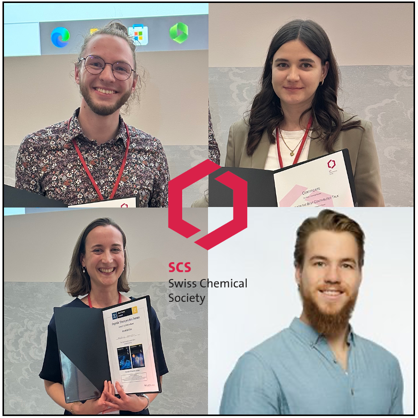 As part of the 2025 edition of the Peptide Therapeutics Forum 2025, that took place at Biozentrum Basel, the SCS also offered the opportunity for students to present a contributed talk and honored the best contributions with the Best Contributed Talk Award and the Best Poster Presentation Award sponsored by Chemistry Europe. Dr. Thomas Vorherr, co-chair of the symposium handed over the certificates: