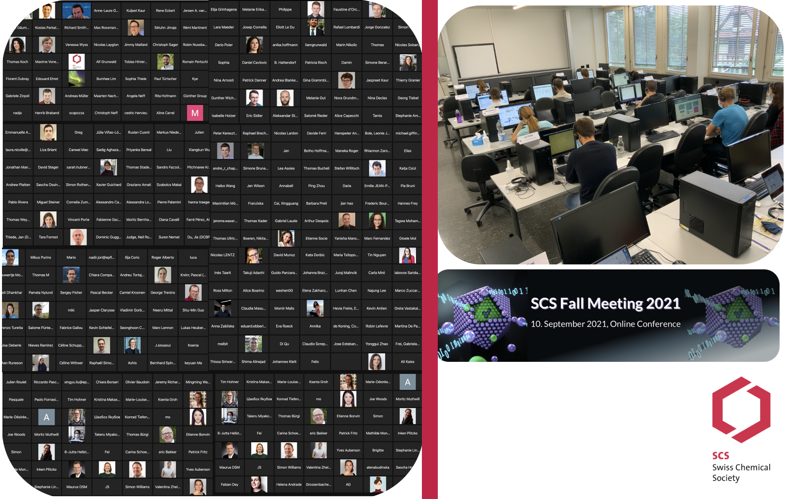 The SCS Fall Meeting 2021, one of the largest annual research conferences was held in Switzerland. For generations of young chemists educated in Switzerland, the Fall Meeting has been a great platform to present their research – often for the first time ever at a major conference - and to be inspired by the people one gets to meet. After a successful event last year, we were using the same platform again for this edition due to the uncertain situation with the ongoing pandemic. For the second time the Fall Meeting took place as an online conference to fulfill the regulations of the government and to facilitate safe exchange of scientific information.Â